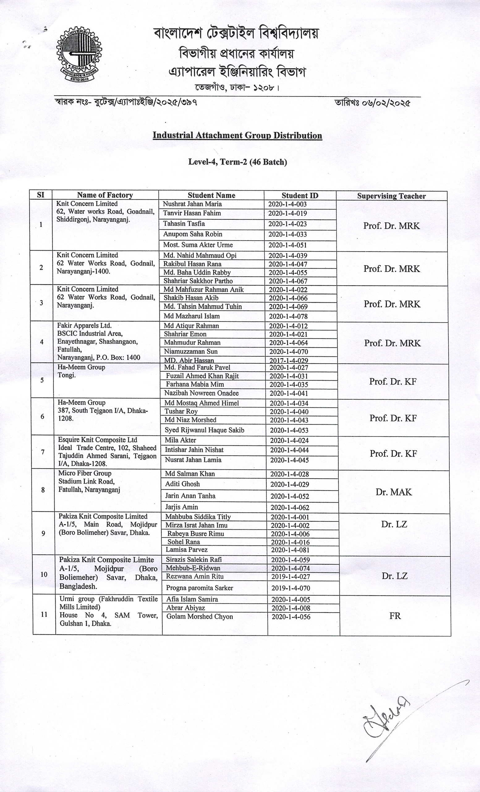 Industrial Attachment Group Distribution Apparel Eng. L-4 T-2 (46 Batch)