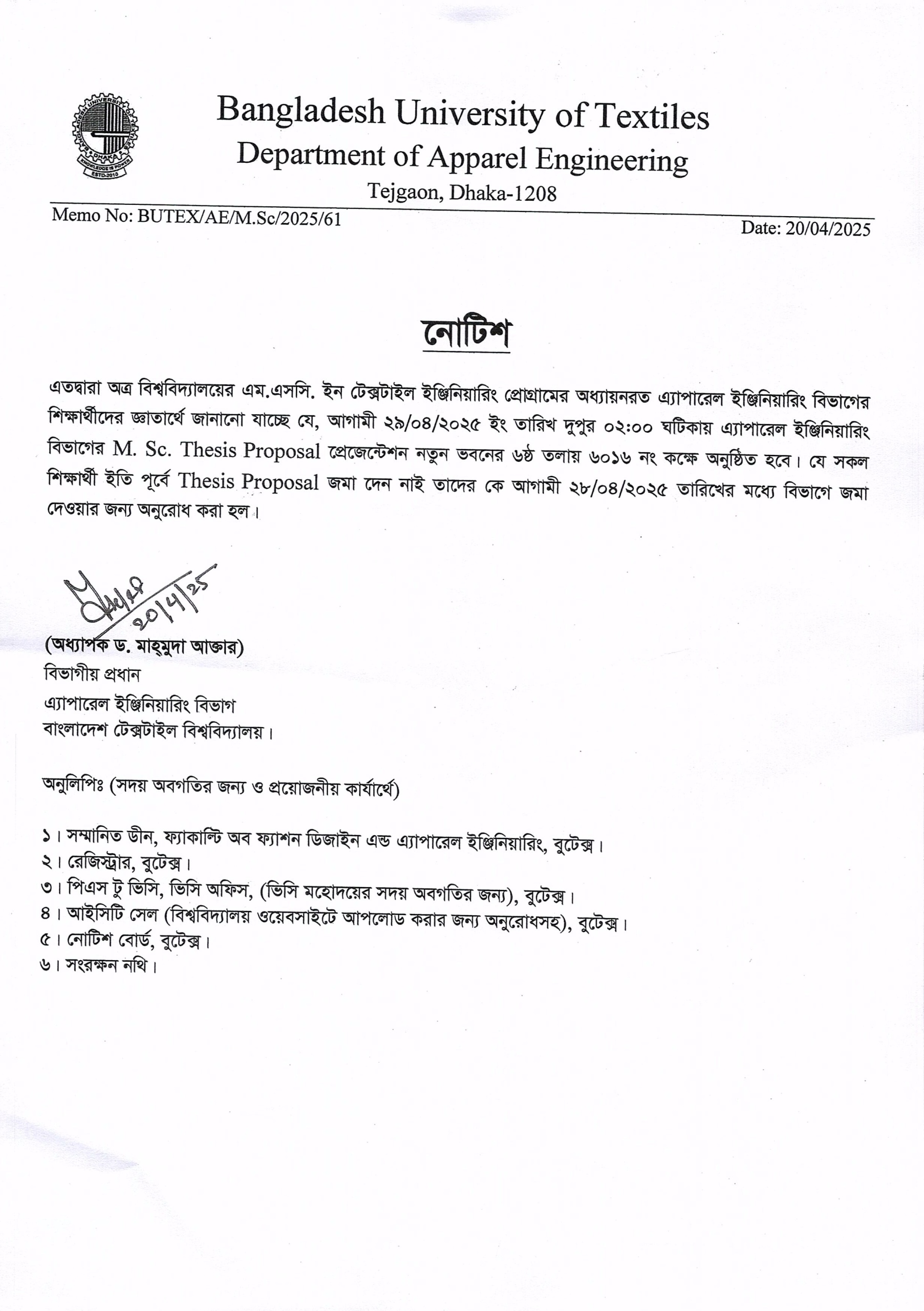 Thesis Proposal Presentation of MSc in Textile Engineering (Apparel)