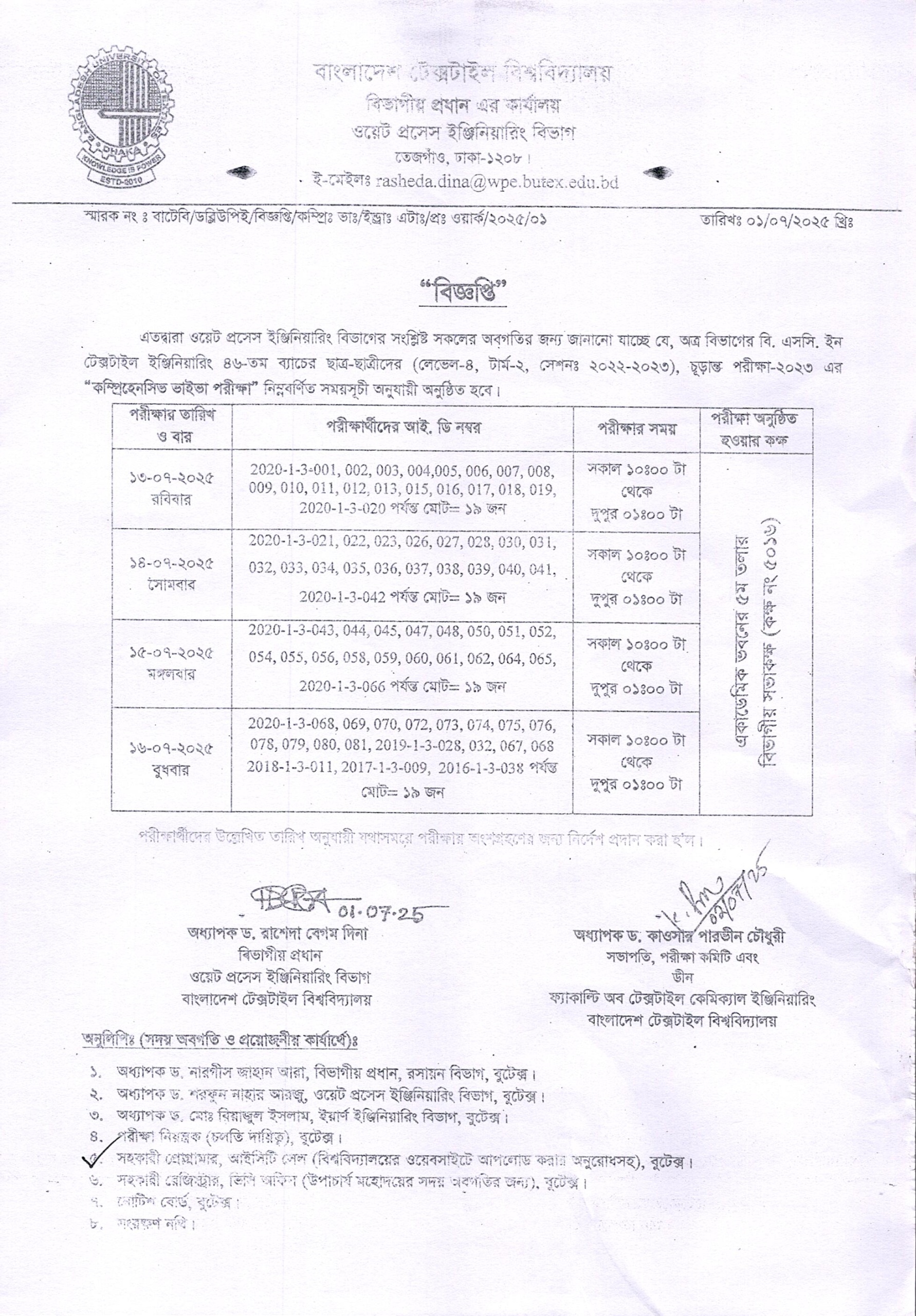 Admission Cancellation Notice: BSc in Textile Engineering 51th Batch