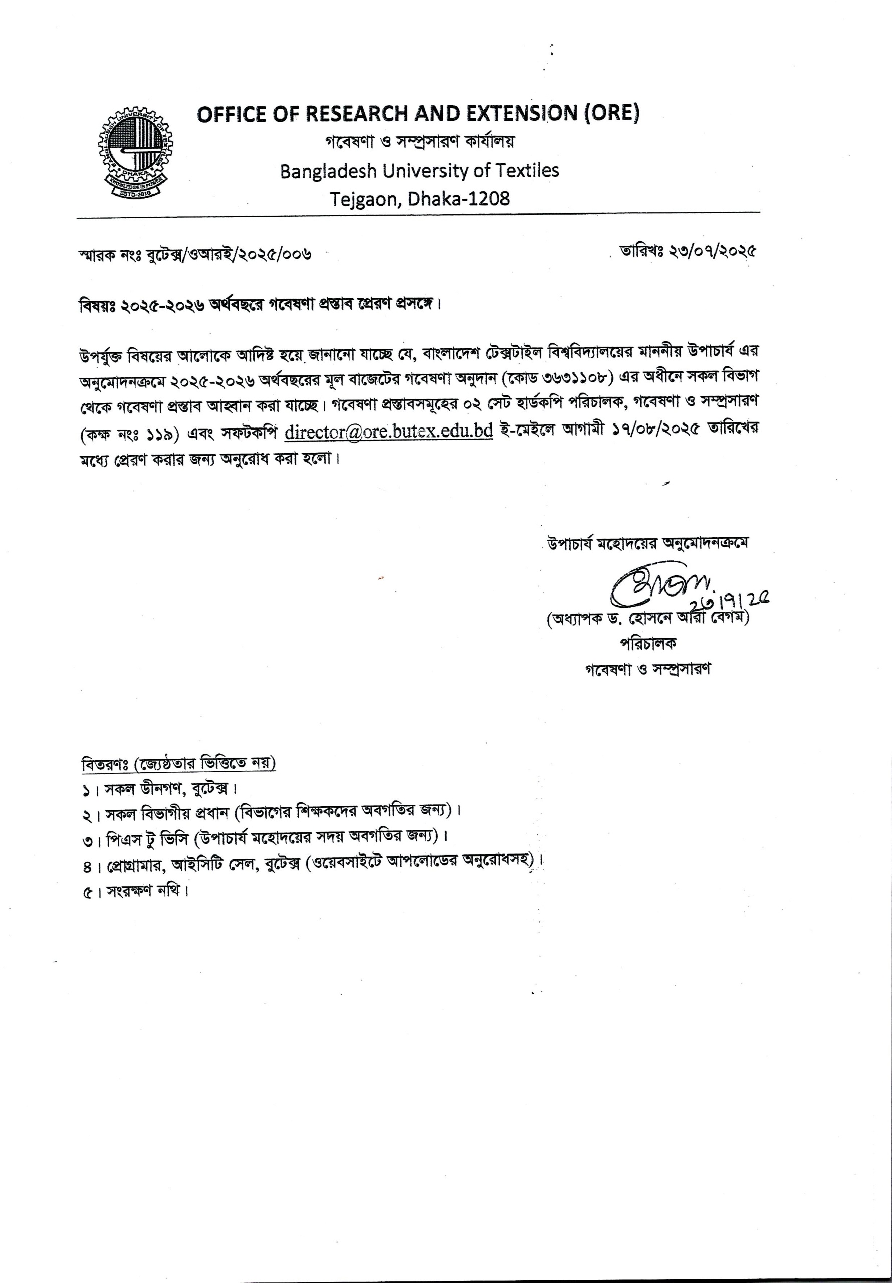 3rd Call Notice for Selected & Waiting Candidates of BSc in Textile Engineering Admission Test 2025-26