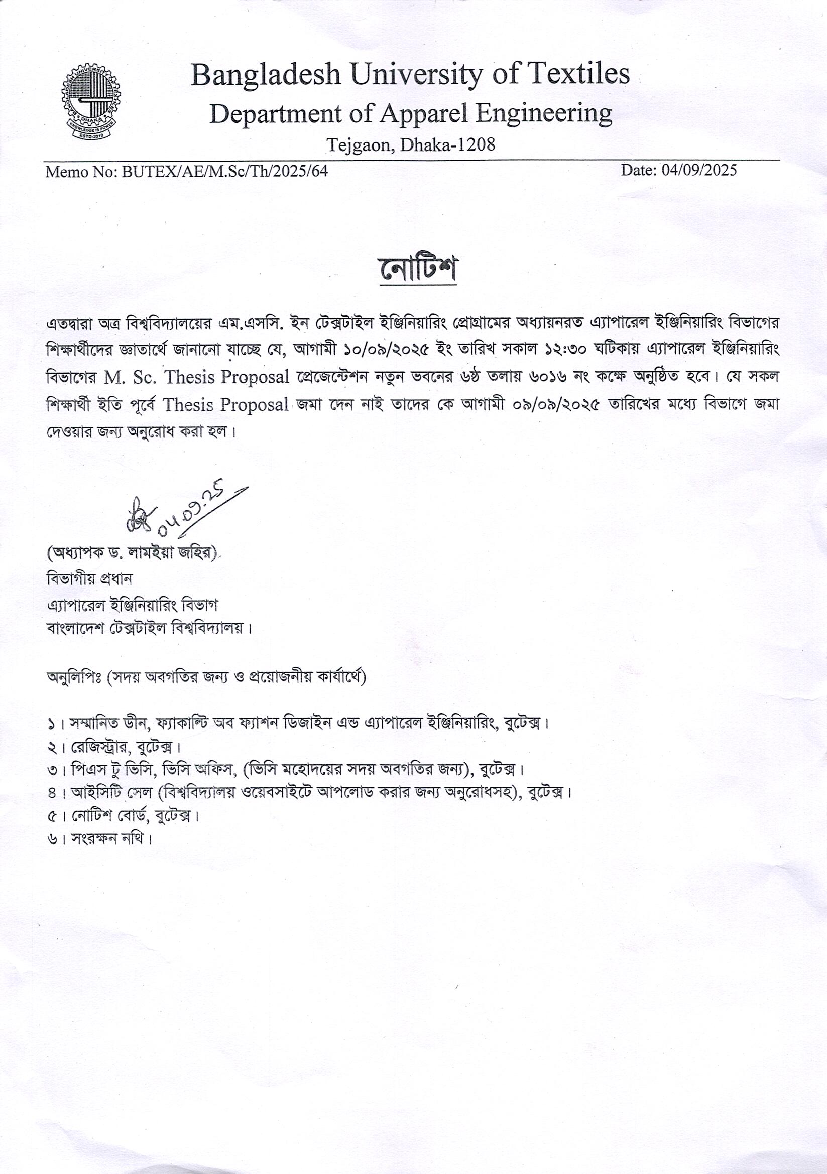 Thesis Proposal Presentation: MSc in Textile Engineering (Apparel Dept.)