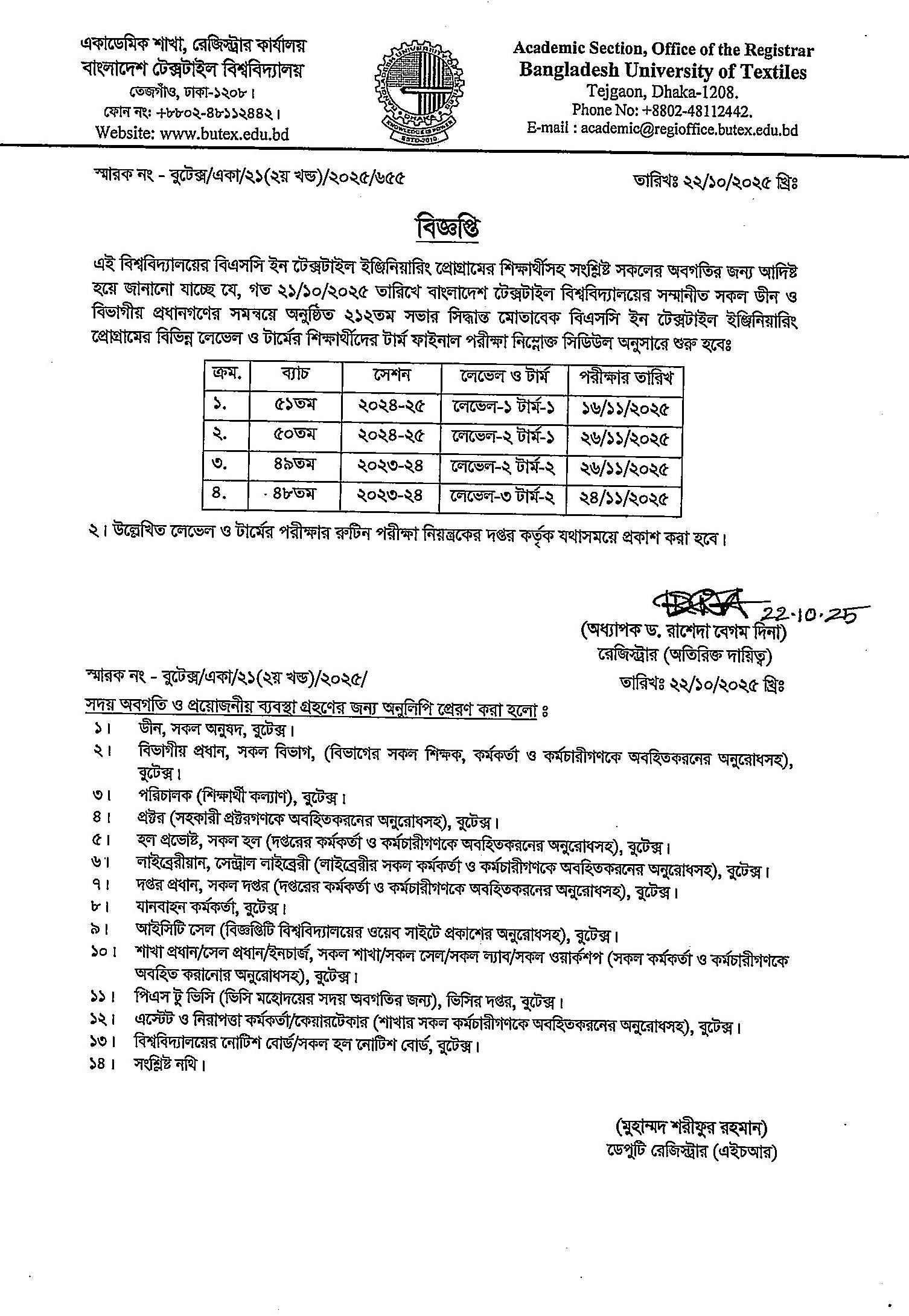 Term Final Exam of 48, 49, 50 & 51 Batch Students BSc in Textile Engineering Program