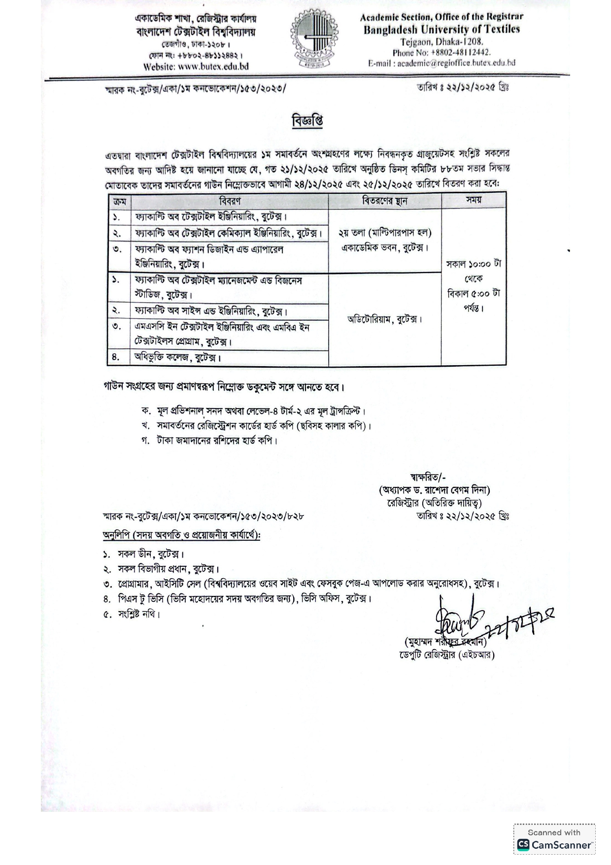 অত্র বিশ্ববিদ্যালয়ের ১ম সমাবর্তন এর গাউন বিতরণ সংক্রান্ত বিজ্ঞপ্তি