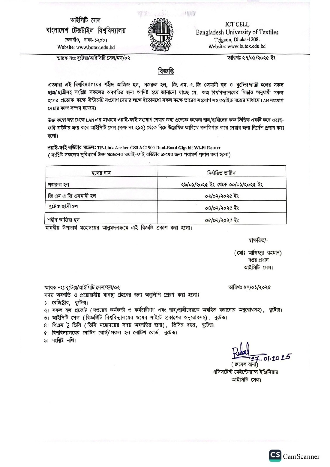 Admission Cancellation Notice: BSc in Textile Engineering 51th Batch