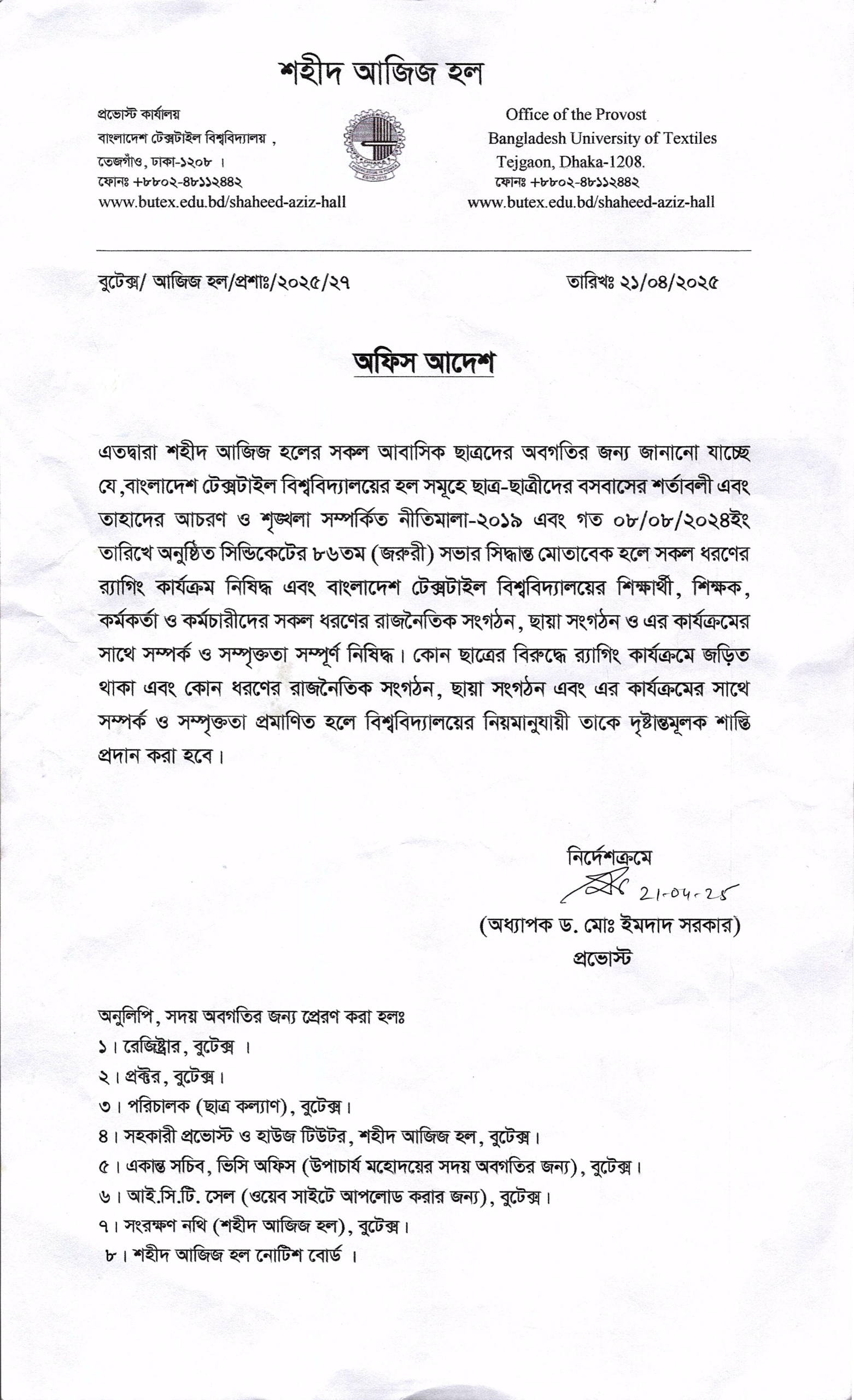 Emergency Disciplinary Notice: Shaheed Aziz Hall