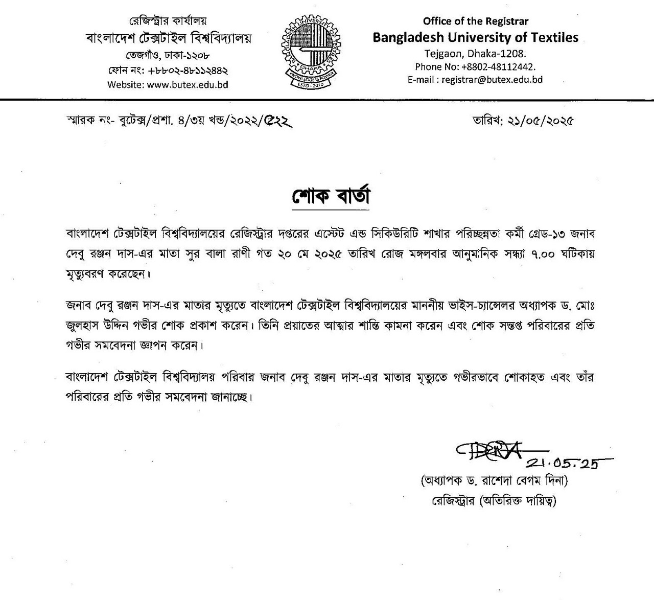 3rd Call Notice for Selected & Waiting Candidates of BSc in Textile Engineering Admission Test 2025-26