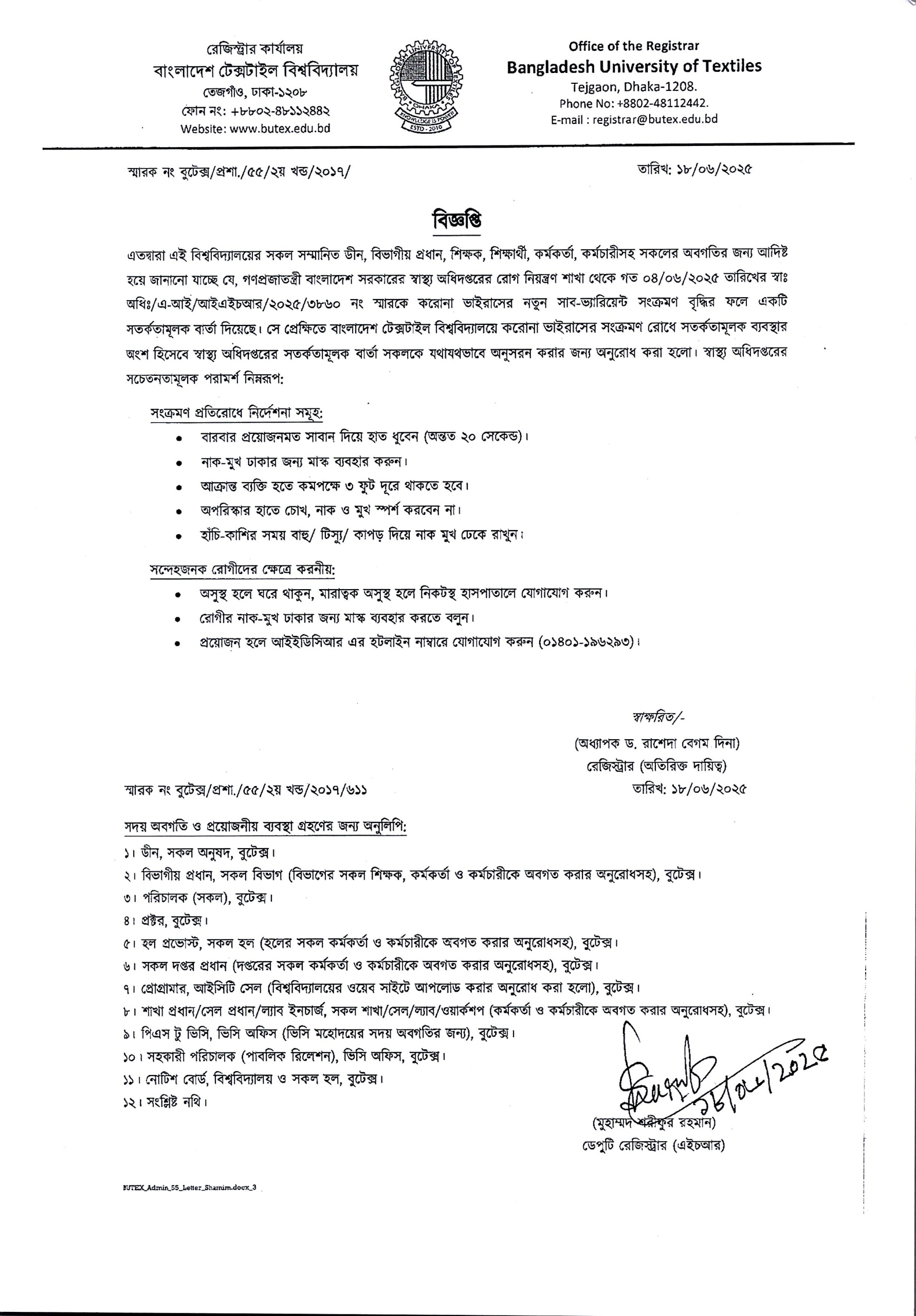 করোনা ভাইরাসের নতুন সাব-ভ্যারিয়েন্ট সংক্রমণ বৃদ্ধির প্রেক্ষিতে সতর্কতামূলক বার্তা
