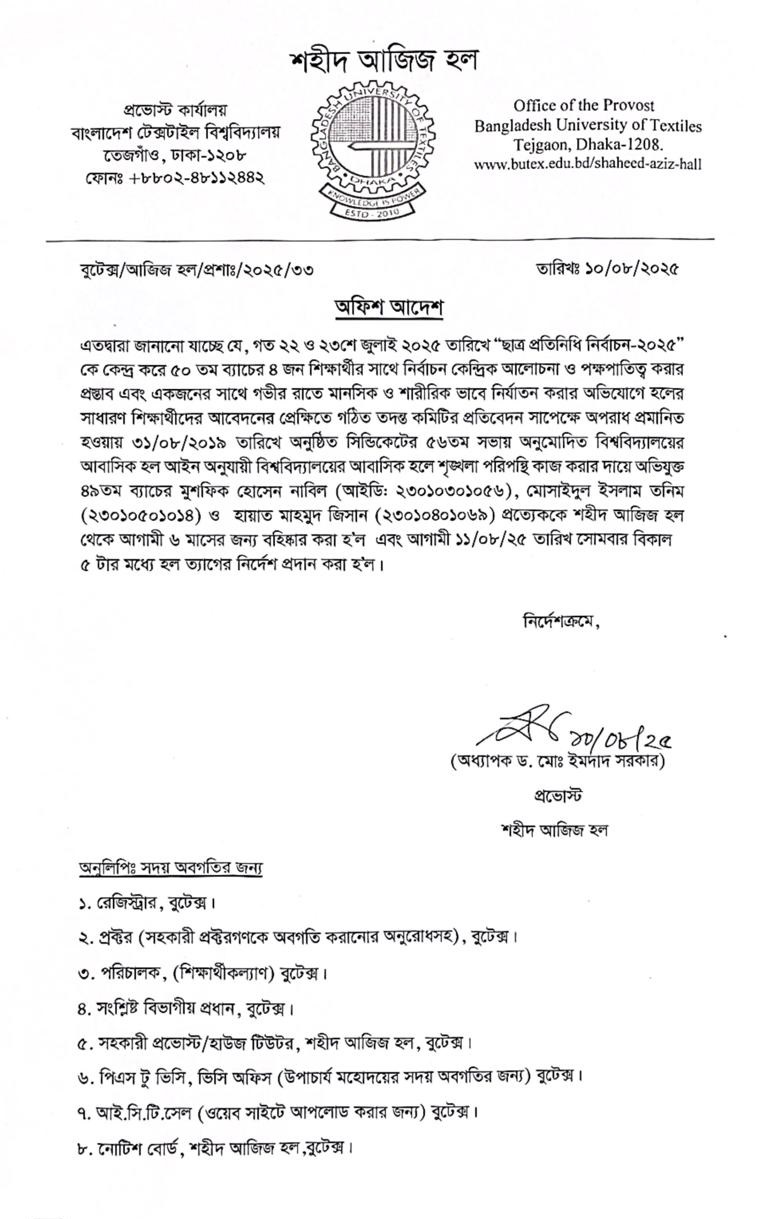 Emergency Disciplinary Notice: Shaheed Aziz Hall